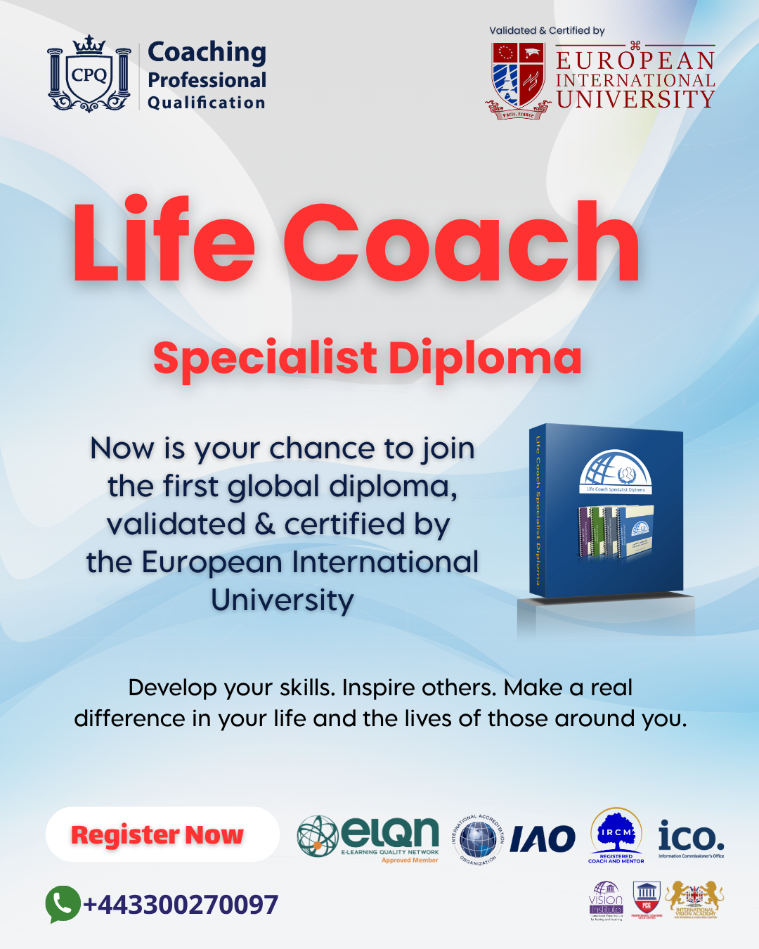 برنامج متخصص لايف كوتش معتمد منهج تدريبي دولي مسجل ومعتمد دولياً مهنه تقودك إلي أن تكون مدرب حياتي قادر علي تطوير أداء الناس ، وجعل تفكيرهم يقودهم إلي زيادة قدرات حياتهم